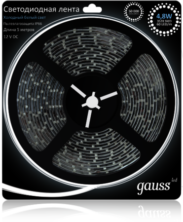 Лента LED 3528/120-SMD 9.6W 12V DC теплый белый IP66 (блистер 5м)
